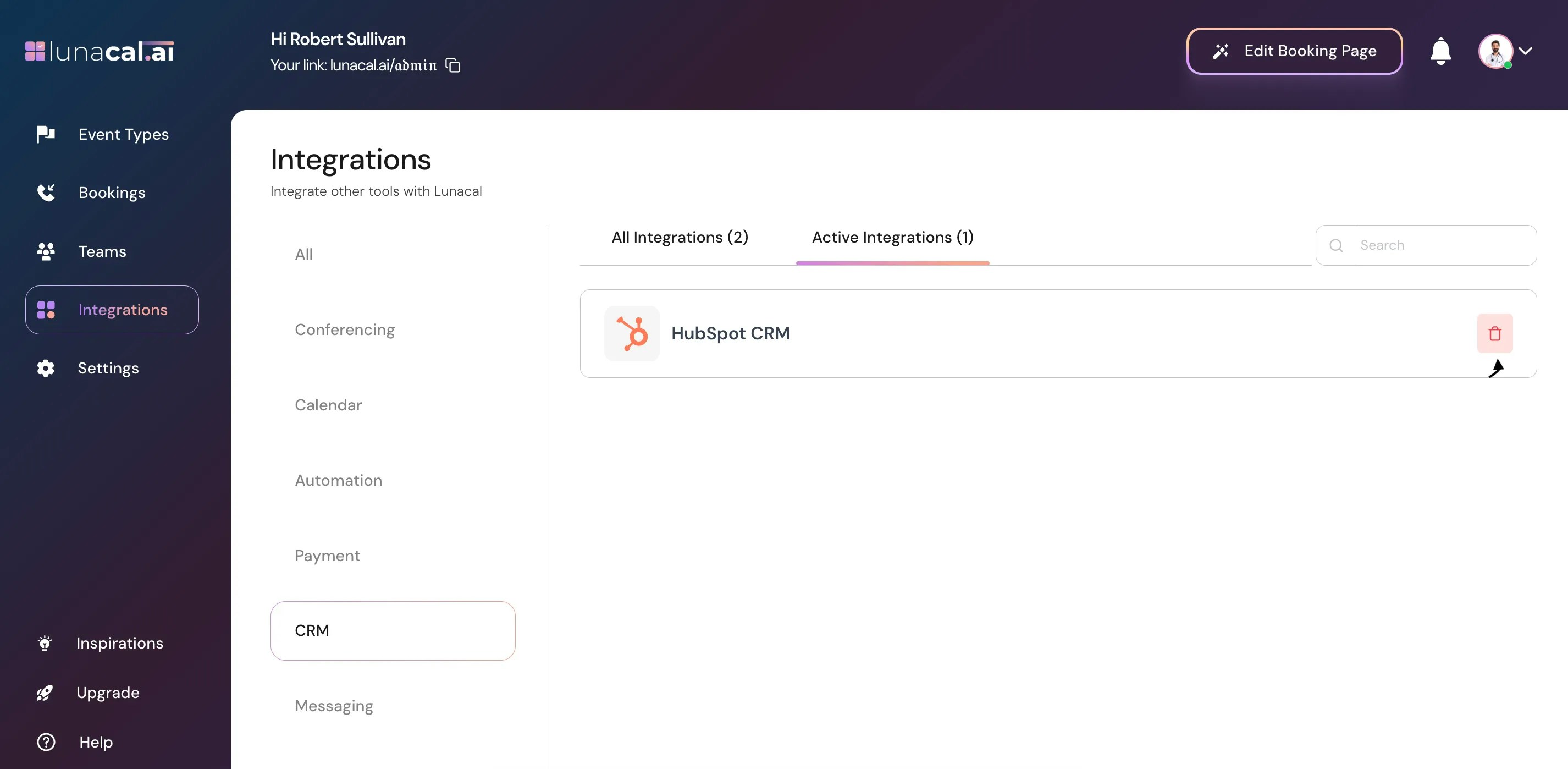 Connect Lunacal with HubSpot to keep contacts and meeting activity in sync. New meetings, cancellations, and reschedules in Lunacal are logged to HubSpot automatically.What you’ll need