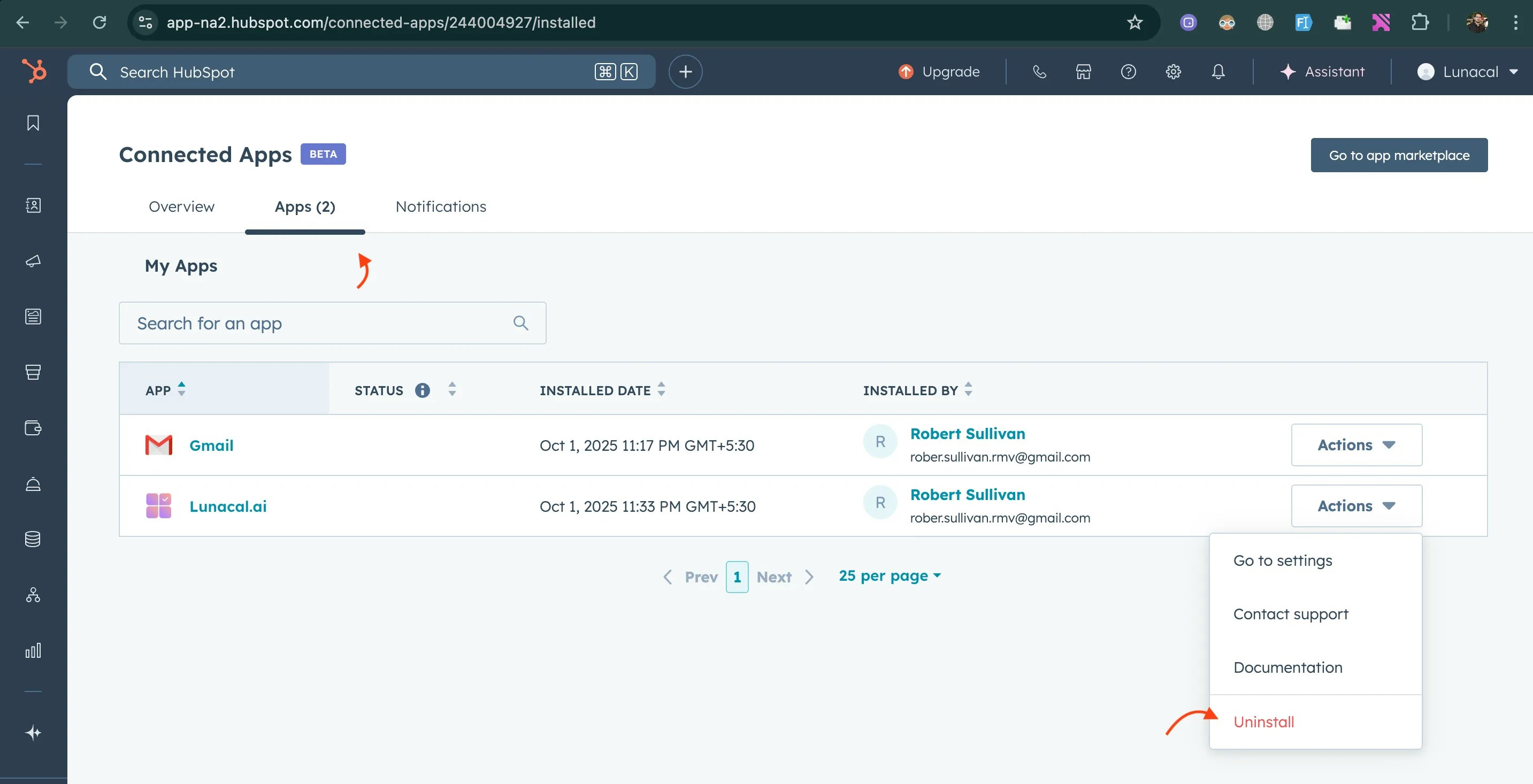 - Step 2 — Uninstall in HubSpot