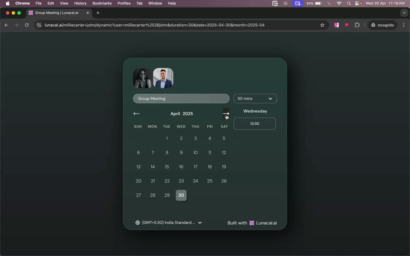 Review the combined availability shown on the page. Pick a slot that fits all the selected teammates. Example: If mornings are busy for London, scan for early afternoon IST which overlaps late morning UK and early morning ET.Step 3