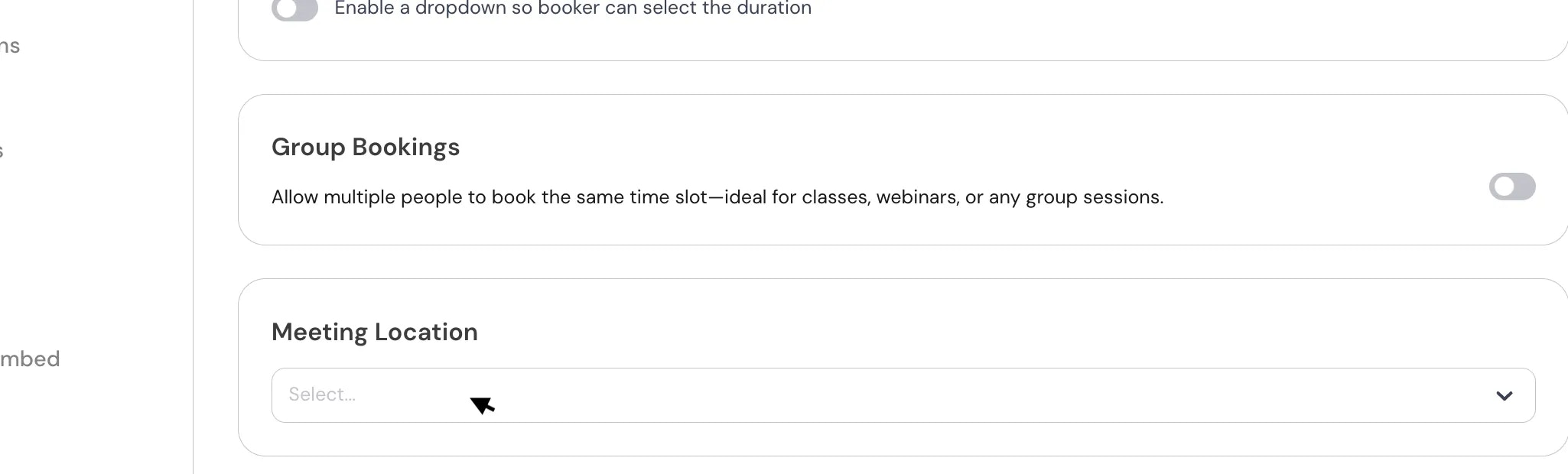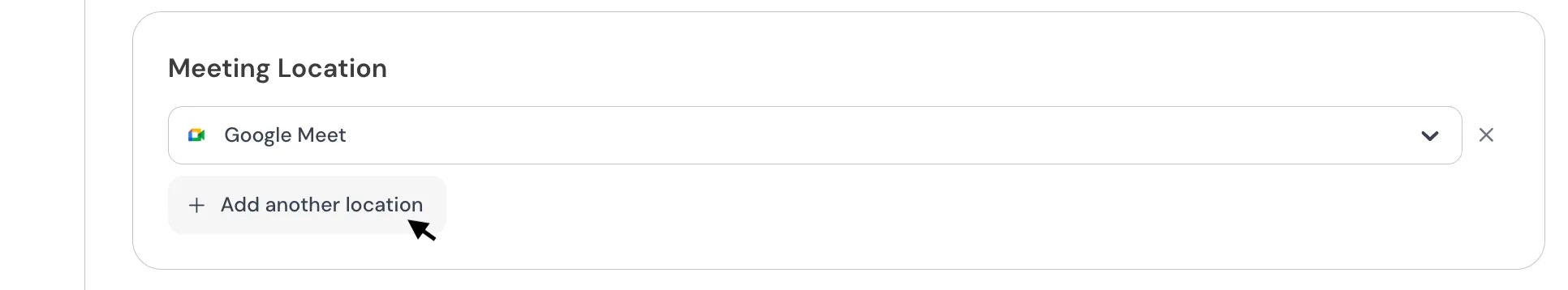 If you want to add another location, Click on “Add another location” again and specify the location. When you add more than one meeting location to an event type, attendees will be able to choose their preferred location during the booking process.To avoid confusion, it’s recommended to clearly define each location (e.g., “Zoom Video Call”, “In-Person – Office”).